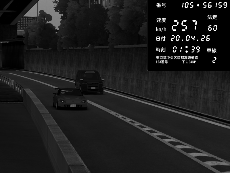 | 2026/04/20 01:39 | C1外回り 京橋 | 257 / 60 km/h | Honda S2000 (AP2 - Legendary) | CAPTURE |