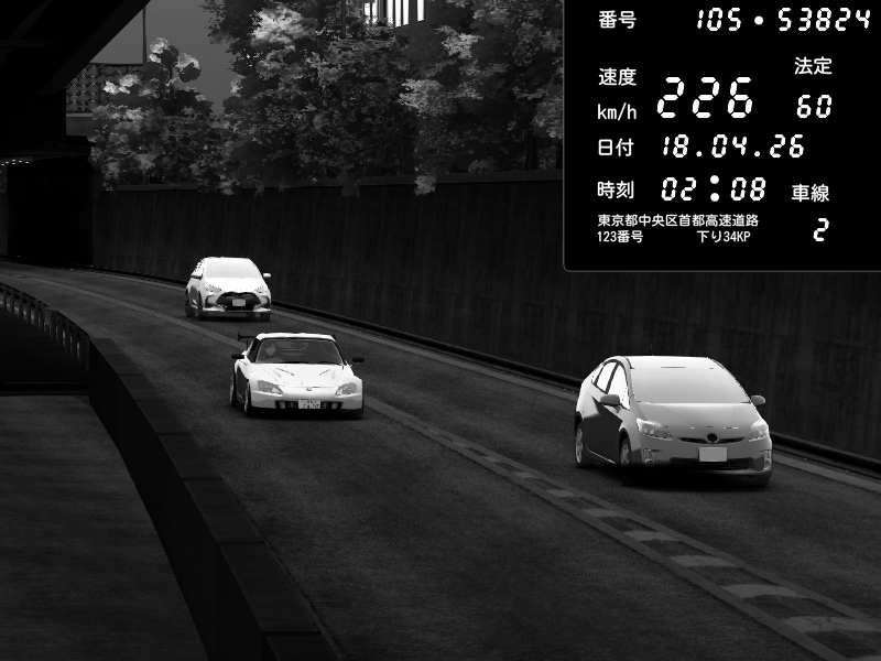 | 2026/04/18 02:08 | C1外回り 京橋 | 226 / 60 km/h | Honda S2000 (AP2 - Legendary) | CAPTURE |