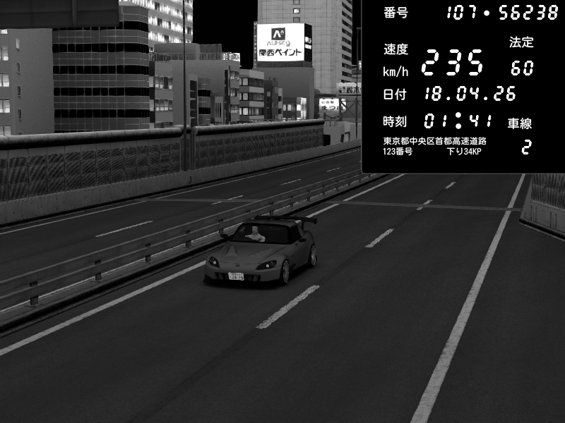 | 2026/04/18 01:40 | C1外回り 京橋 | 256 / 60 km/h | Honda S2000 (AP2 - Legendary) | CAPTURE |
