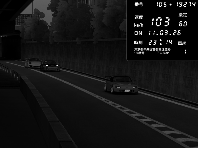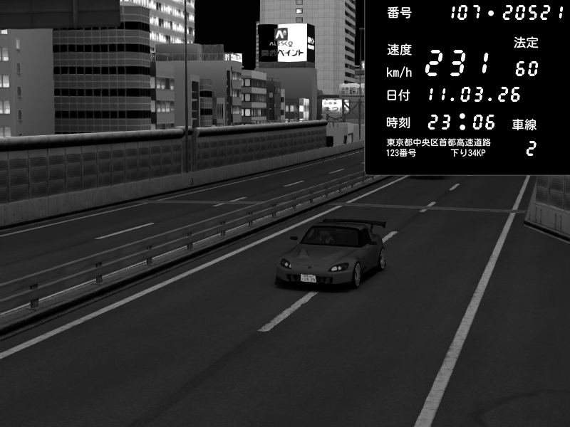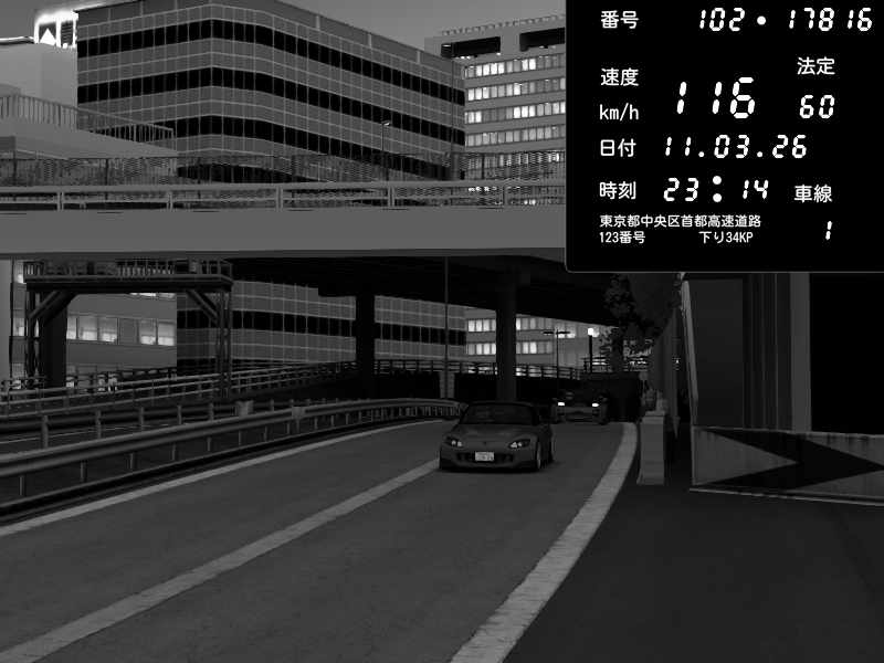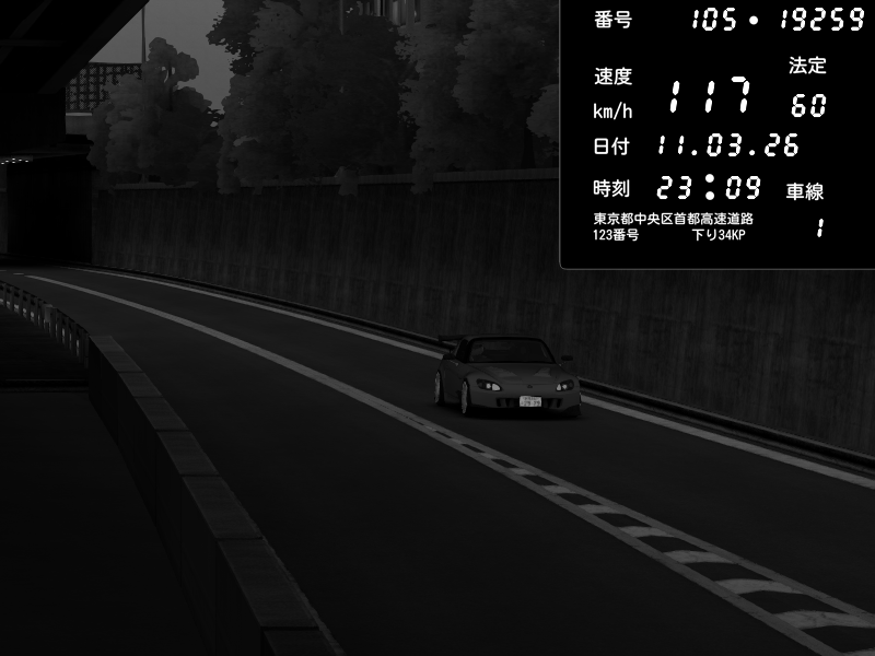 | 2026/03/11 23:14 | C1外回り 新富町 | 116 / 60 km/h | Honda S2000 (AP2 - Legendary) | CAPTURE |