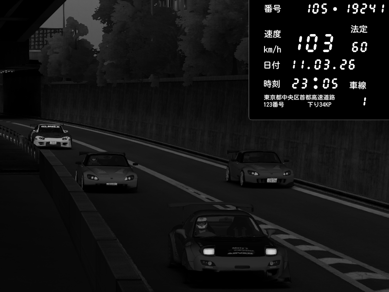 | 2026/03/11 23:05 | C1外回り 京橋 | 103 / 60 km/h | Honda S2000 (AP2 - Legendary) | CAPTURE |