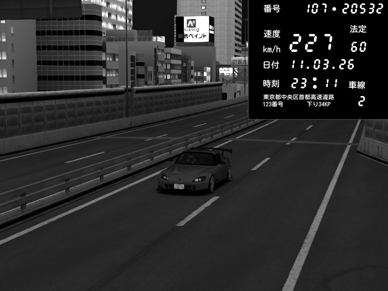 | 2026/03/11 23:11 | C1外回り 芝公園 | 227 / 60 km/h | Honda S2000 (AP2 - Legendary) | CAPTURE |