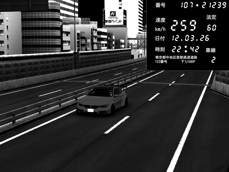 | 2026/03/12 22:41 | C1外回り 新富町 | 146 / 60 km/h | BMW M4 crash.Sp Varis Widebody | CAPTURE |