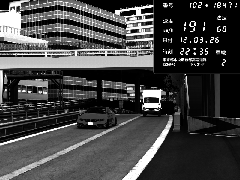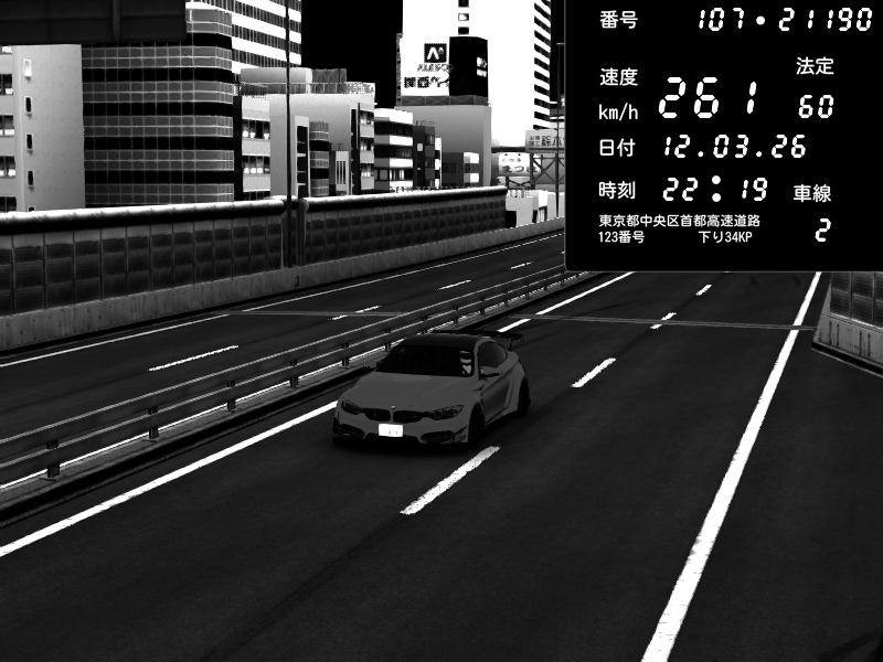 | 2026/03/12 22:35 | C1外回り 新富町 | 191 / 60 km/h | BMW M4 crash.Sp Varis Widebody | CAPTURE |