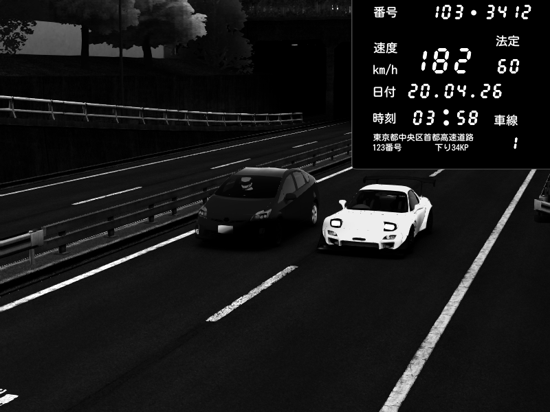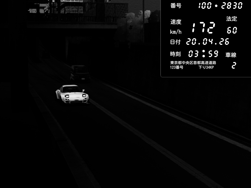 | 2026/04/20 03:58 | C1内回り 銀座 | 182 / 60 km/h | Mazda RX-7 FD3S FEED Afflux GT3 | CAPTURE |