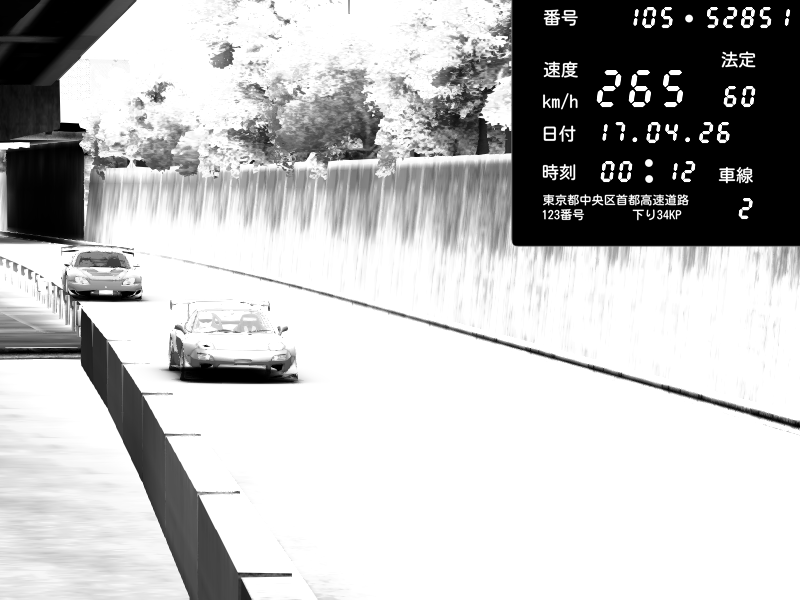 | 2026/04/17 00:12 | C1外回り 京橋 | 265 / 60 km/h | Mazda RX-7 FD3S FEED Afflux GT3 | CAPTURE |