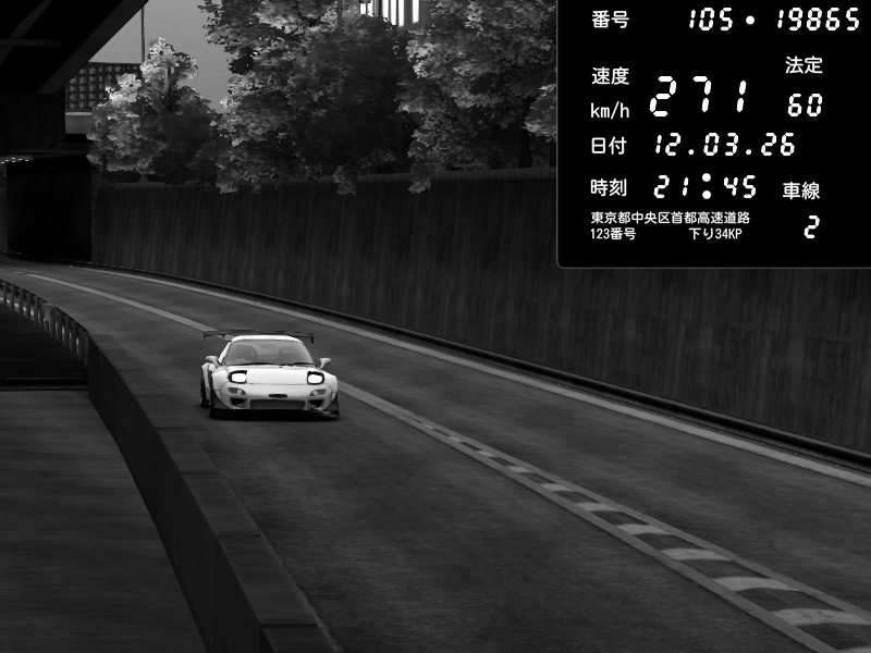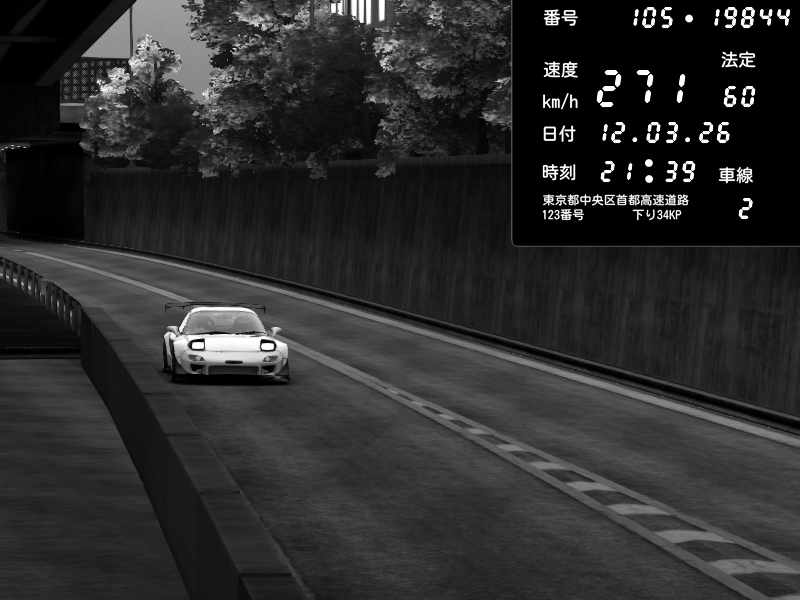 | 2026/03/12 21:45 | C1外回り 京橋 | 271 / 60 km/h | Mazda RX-7 FD3S FEED Afflux GT3 | CAPTURE |