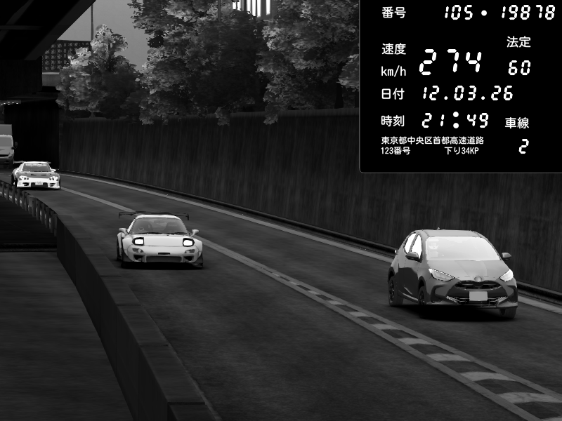 | 2026/03/12 21:49 | C1外回り 京橋 | 274 / 60 km/h | Mazda RX-7 FD3S FEED Afflux GT3 | CAPTURE |