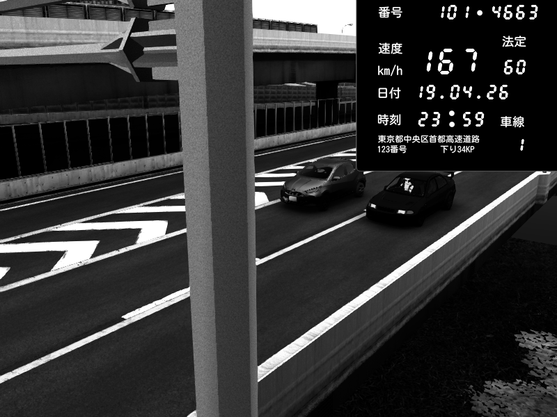 | 2026/04/19 23:53 | 4号下り 代々木 | 123 / 60 km/h | Mitsubishi Lancer Evolution V Wangan Spec | CAPTURE |