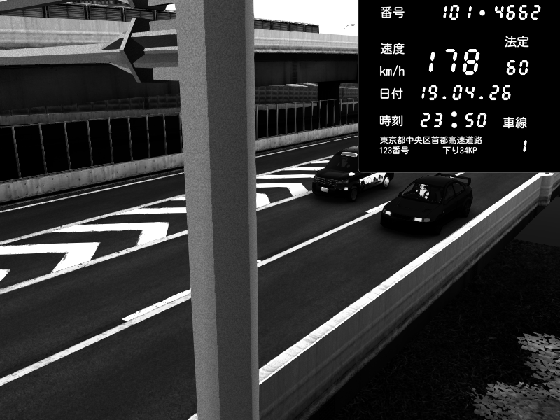 | 2026/04/19 23:45 | C1内回り 竹橋JCT | 160 / 60 km/h | Mitsubishi Lancer Evolution V Wangan Spec | CAPTURE |