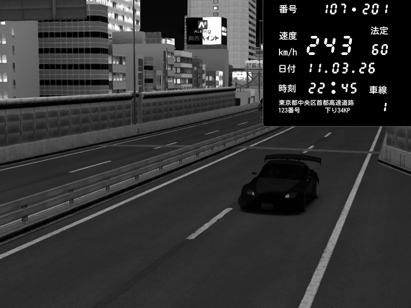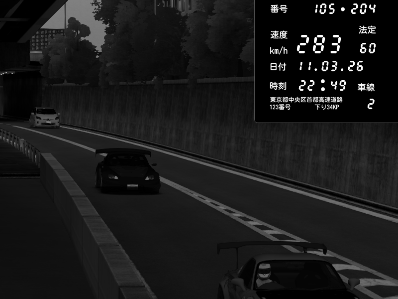 | 2026/03/11 22:49 | C1外回り 京橋 | 283 / 60 km/h | Honda S2000 Turbo GT1 Amuse (AP1) | CAPTURE |
