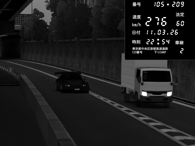 | 2026/03/11 22:45 | C1外回り 芝公園 | 243 / 60 km/h | Honda S2000 Turbo GT1 Amuse (AP1) | CAPTURE |