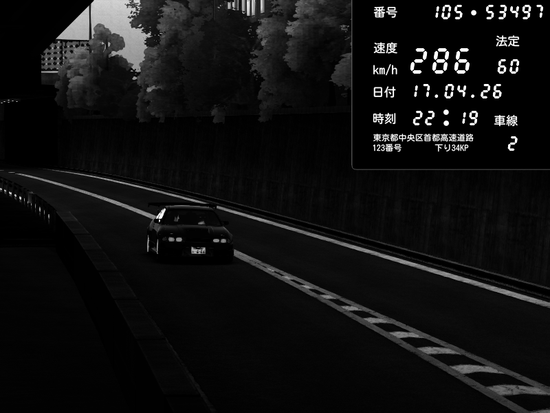 | 2026/04/17 22:19 | C1外回り 京橋 | 286 / 60 km/h | Nissan Skyline GTR R33 (S3 - Wangan) | CAPTURE |
