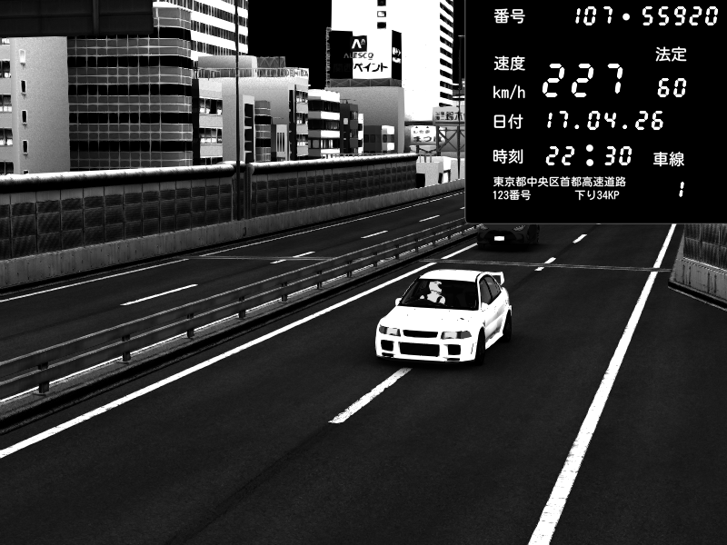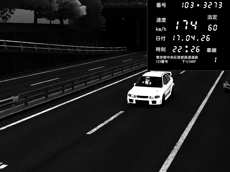 | 2026/04/17 22:26 | C1内回り 銀座 | 174 / 60 km/h | Mitsubishi Lancer Evolution V Wangan Spec | CAPTURE |
