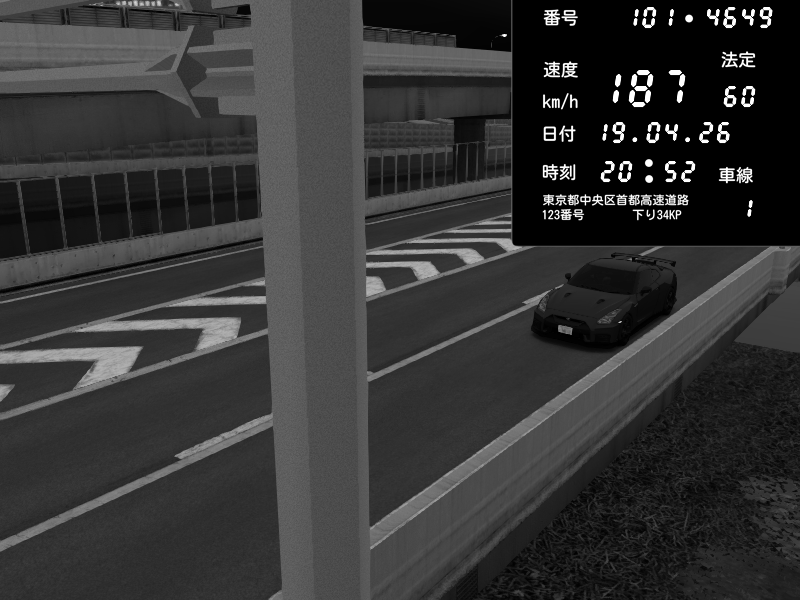 | 2026/04/19 20:52 | C1内回り 竹橋JCT | 187 / 60 km/h | Nissan GT-R NISMO 2017 | CAPTURE |