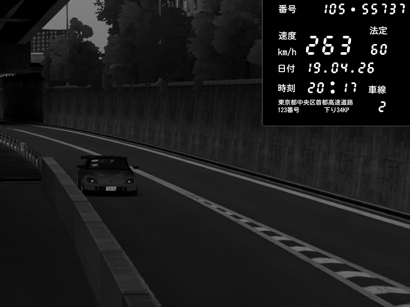| 2026/04/19 20:17 | C1外回り 京橋 | 263 / 60 km/h | Honda S2000 (AP2 - Legendary) | CAPTURE |