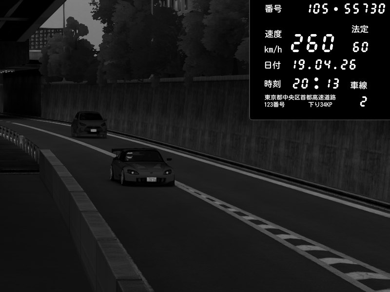 | 2026/04/19 20:13 | C1外回り 京橋 | 260 / 60 km/h | Honda S2000 (AP2 - Legendary) | CAPTURE |