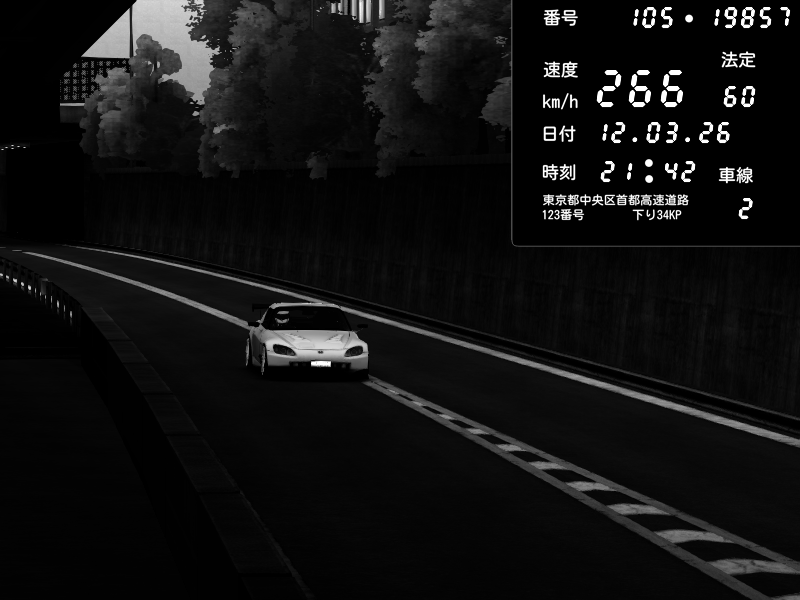 | 2026/03/12 21:42 | C1外回り 京橋 | 266 / 60 km/h | Honda S2000 (AP2 - Legendary) | CAPTURE |