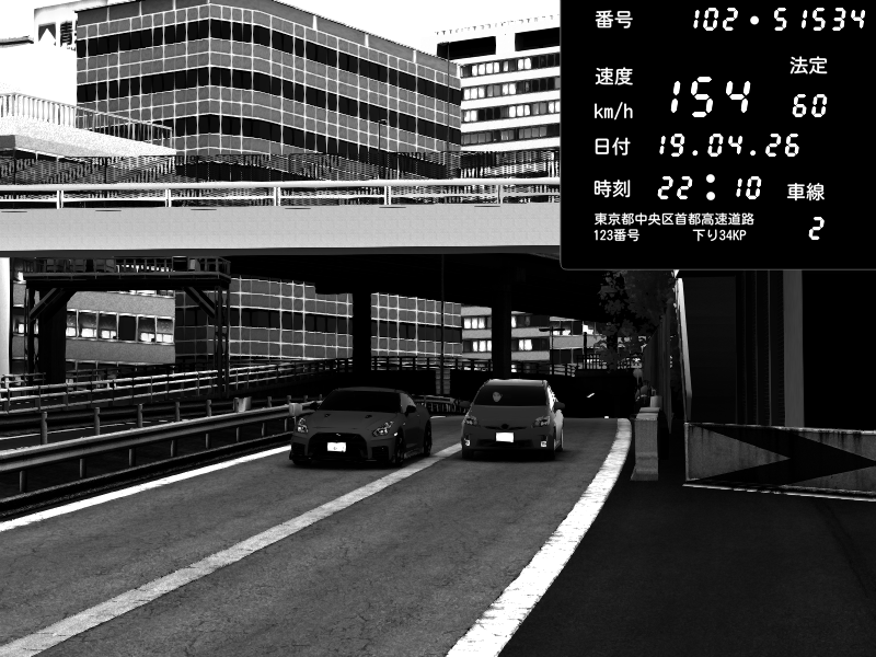 | 2026/04/19 22:10 | C1外回り 新富町 | 154 / 60 km/h | Nissan GT-R NISMO 2017 | CAPTURE |