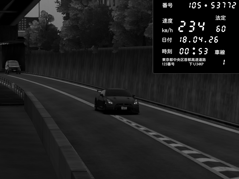 | 2026/04/18 00:53 | C1外回り 京橋 | 234 / 60 km/h | Nissan GT-R NISMO 2017 | CAPTURE |