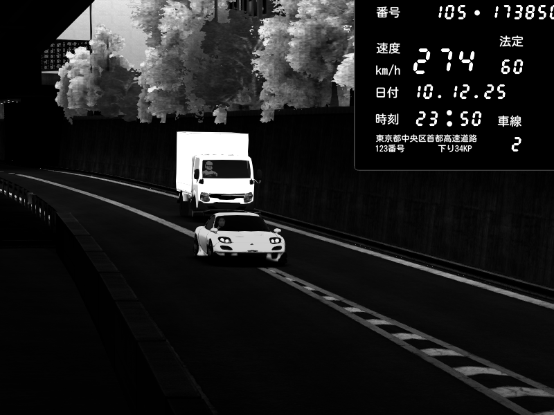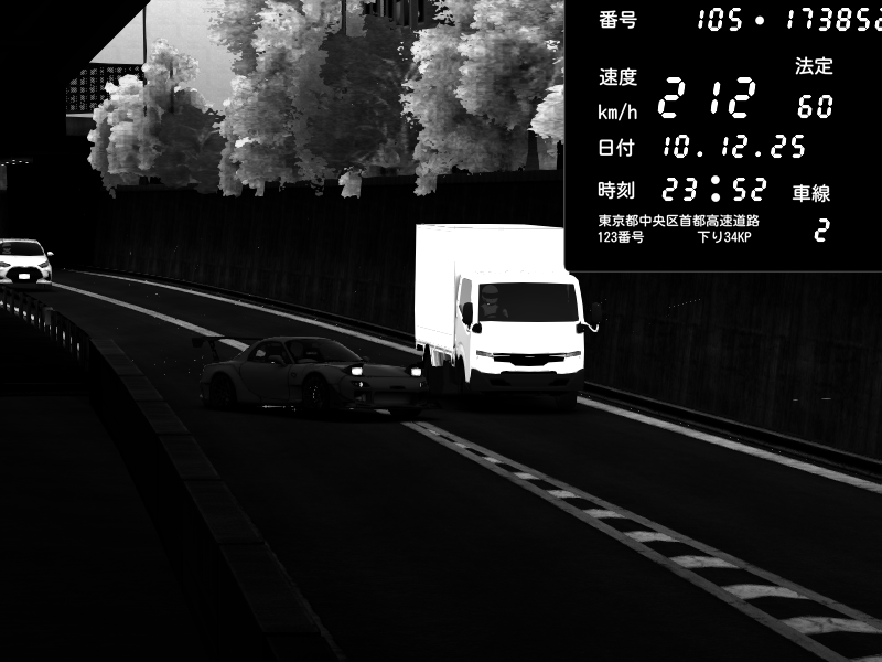 | 2025/12/10 23:52 | C1外回り 京橋 | 212 / 60 km/h | Player | Mazda RX-7 FD3S FEED Afflux GT3 | CAPTURE |