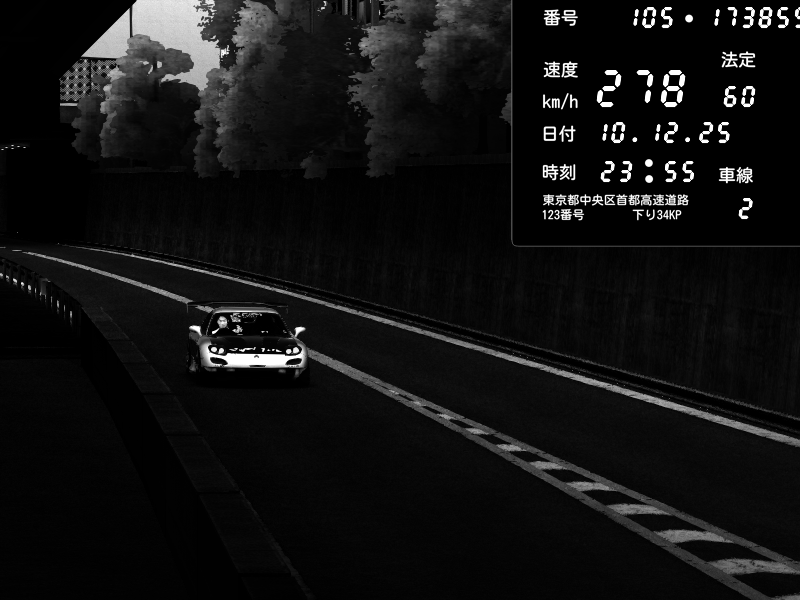 | 2025/12/10 23:53 | C1外回り 新富町 | 106 / 60 km/h | Player | Mazda RX-7 FD3S FEED Afflux GT3 | CAPTURE |