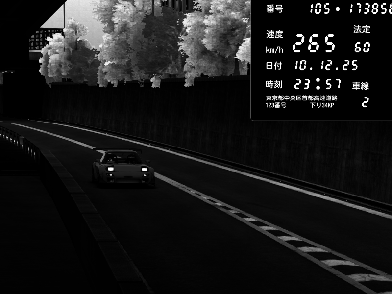 | 2025/12/10 23:57 | C1外回り 京橋 | 265 / 60 km/h | Player | Mazda RX-7 FD3S FEED Afflux GT3 | CAPTURE |