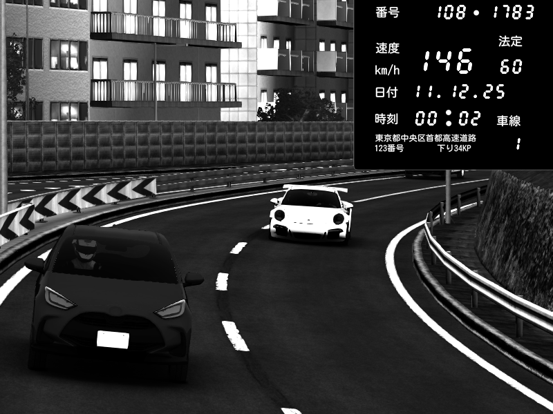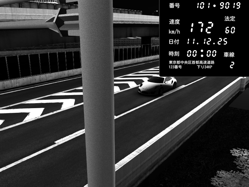 | 2025/12/11 00:00 | C1内回り 竹橋JCT | 172 / 60 km/h | Player | Porsche 911 GT3 RS | CAPTURE |