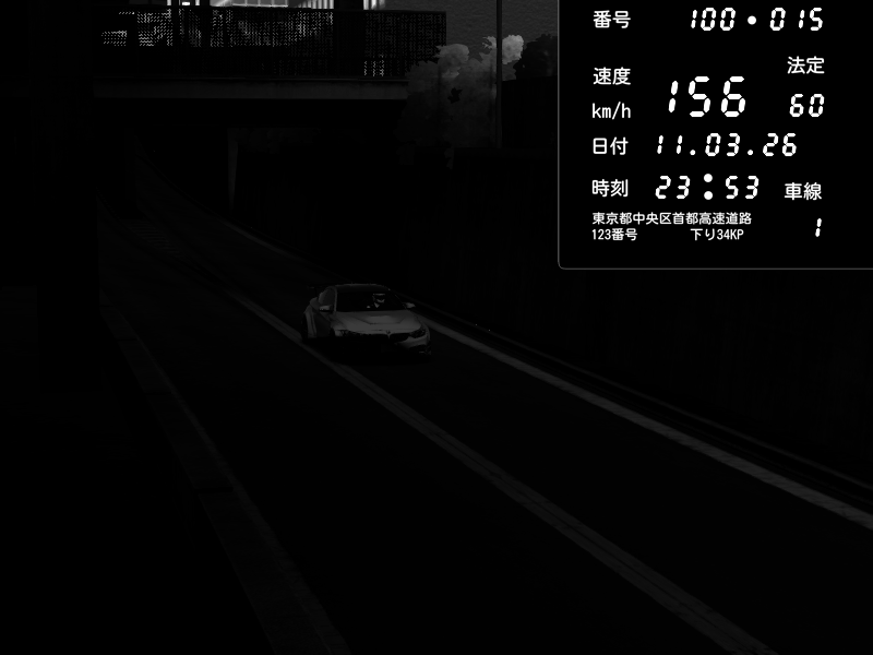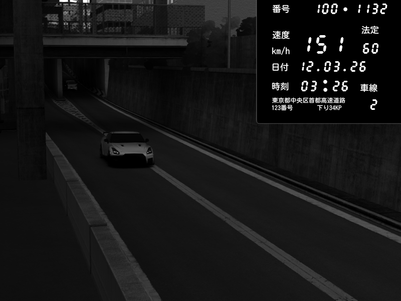 | 2026/03/11 23:41 | C1内回り 京橋 | 167 / 60 km/h | Player | Nissan GT-R NISMO 2017 | CAPTURE |
