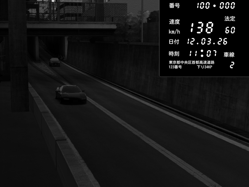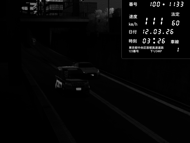 | 2026/03/12 03:26 | C1内回り 京橋 | 111 / 60 km/h | Player | Nissan GT-R NISMO 2017 | CAPTURE |
