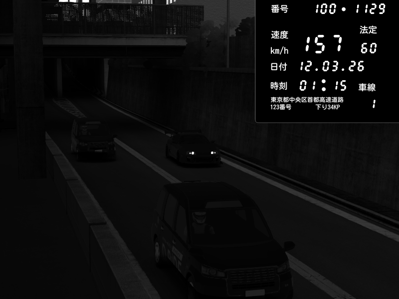 | 2026/03/11 22:43 | C1内回り 京橋 | 190 / 60 km/h | Raven | Pit Road M - Mitsubishi GTO Twin Turbo | CAPTURE |
