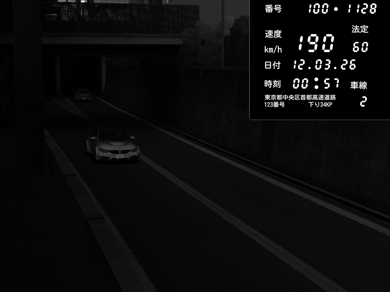 | 2026/03/11 23:49 | C1内回り 京橋 | 187 / 60 km/h | Mixed_P5K | BMW M4 crash.Sp Varis Widebody | CAPTURE |