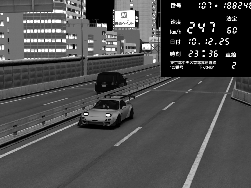 | 2025/12/10 23:59 | C1外回り 芝公園 | 220 / 60 km/h | Player | Mazda RX-7 FD3S FEED Afflux GT3 | CAPTURE |